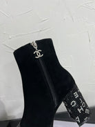 CC Short Boots 95mm In Black With Letters Printed Suede And Lambskin 949659