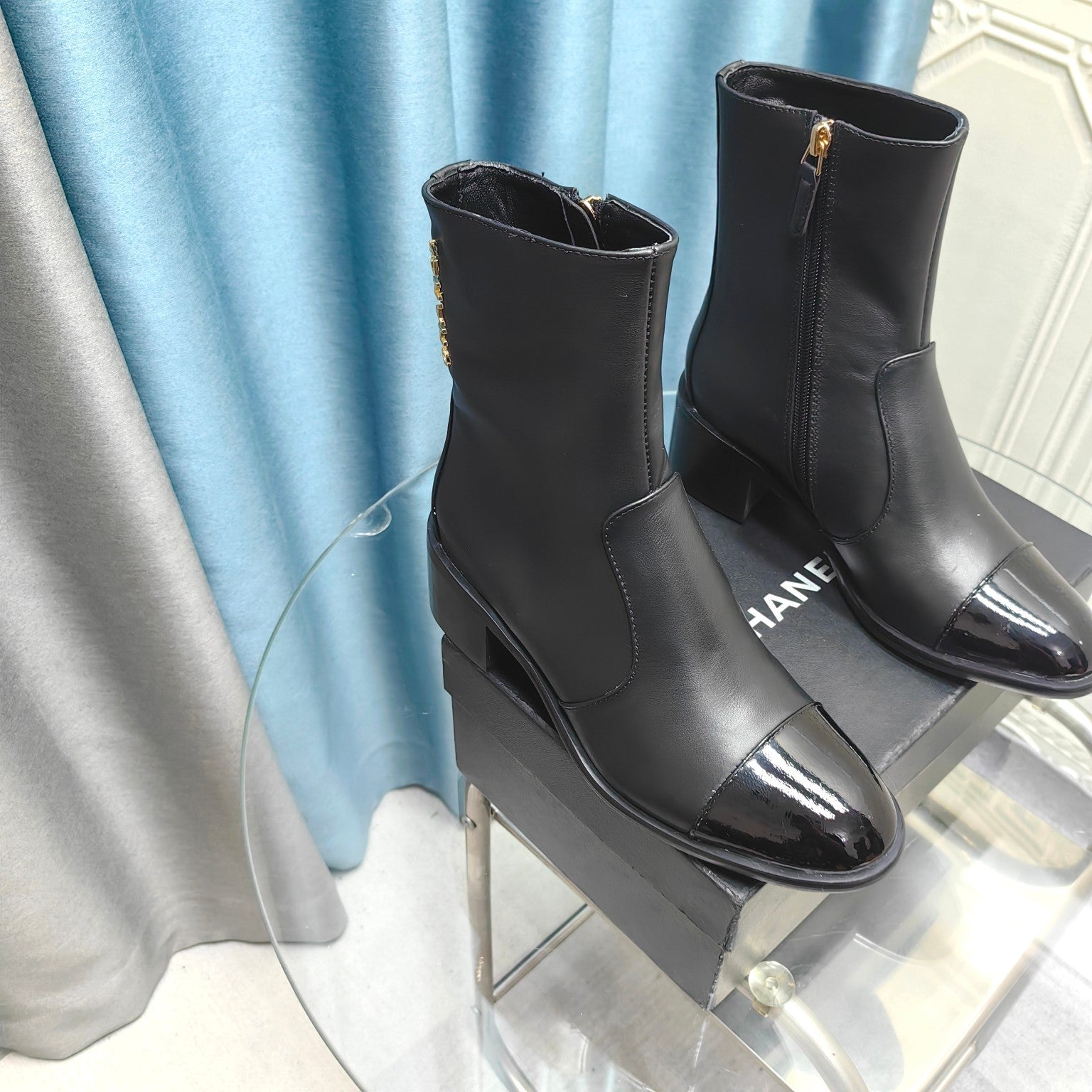 CC Short Boots Black Calfskin And Lambskin