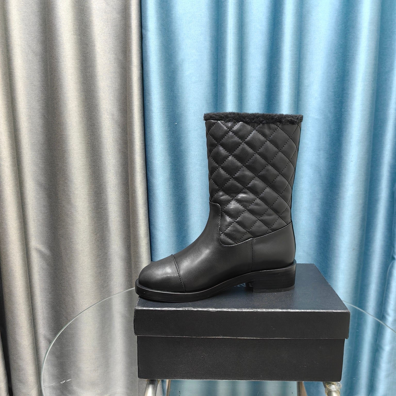 CC Short Boots Black Calfskin Lining Wool And Lambskin