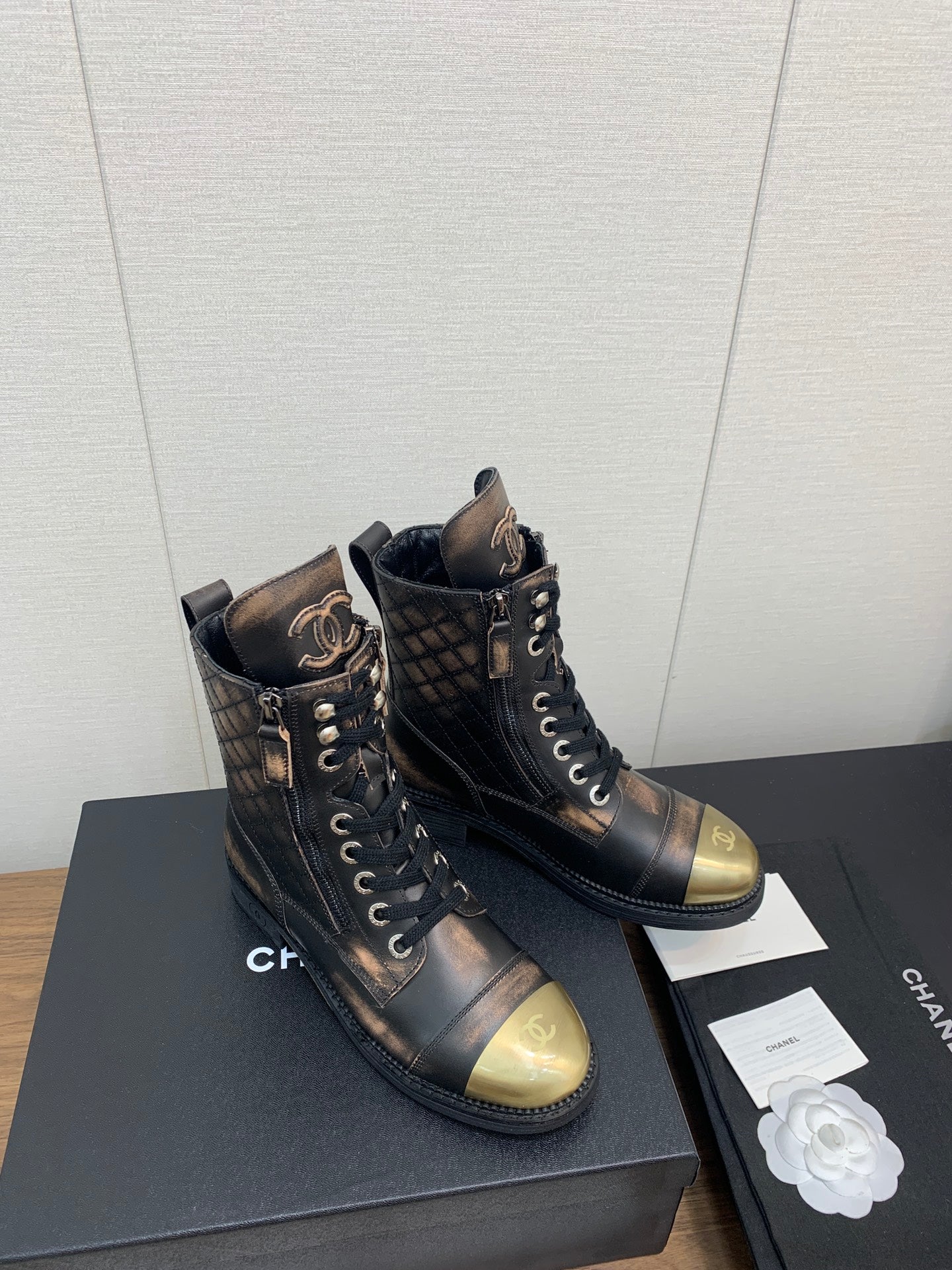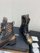 CC Short Boots Brown Black Yellow Cowhide