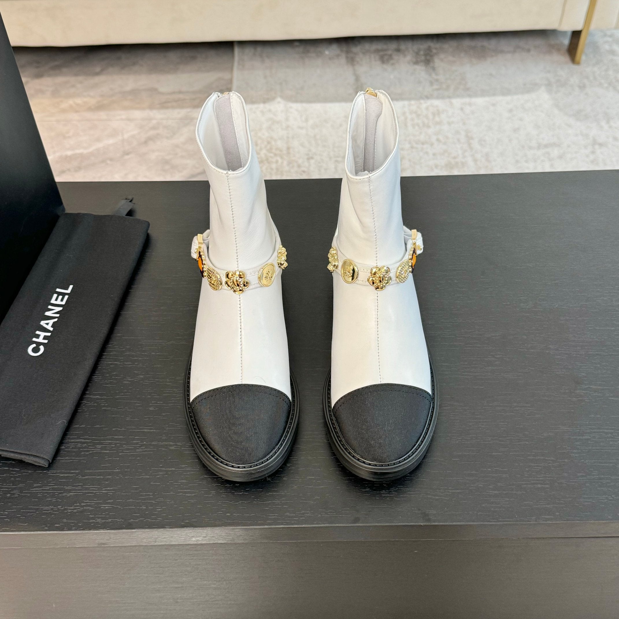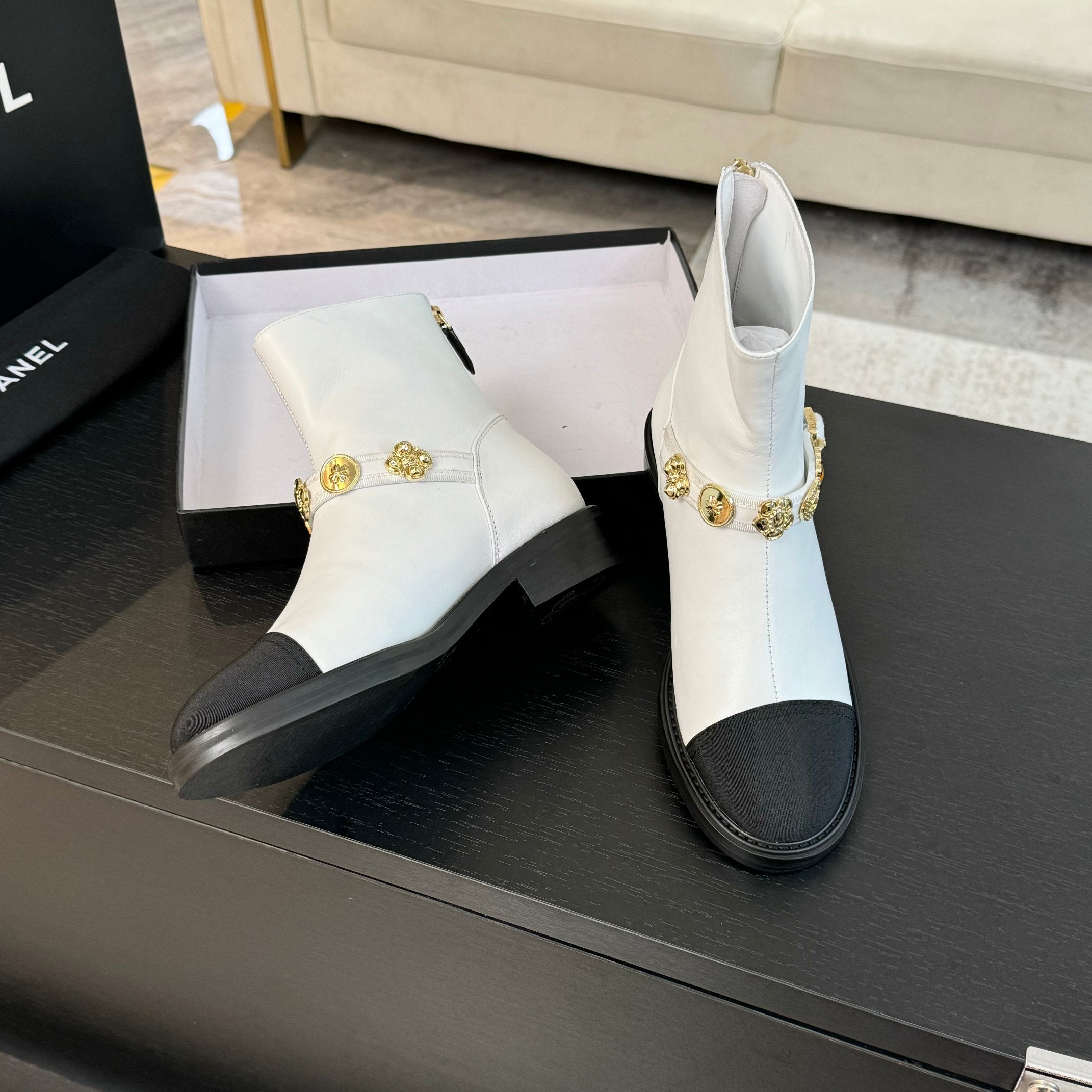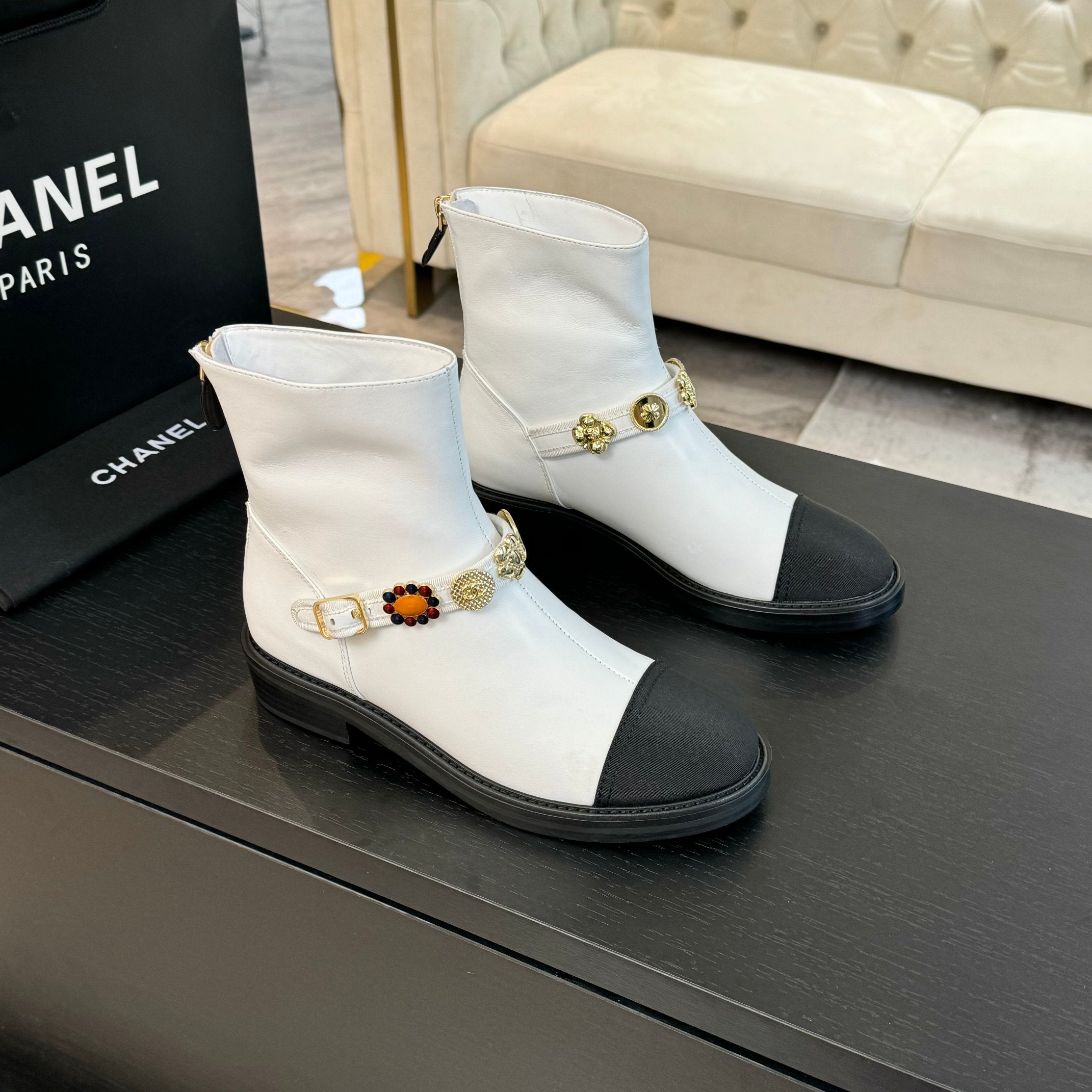 CC Short boots White Cowhide Mix Fabric Denim