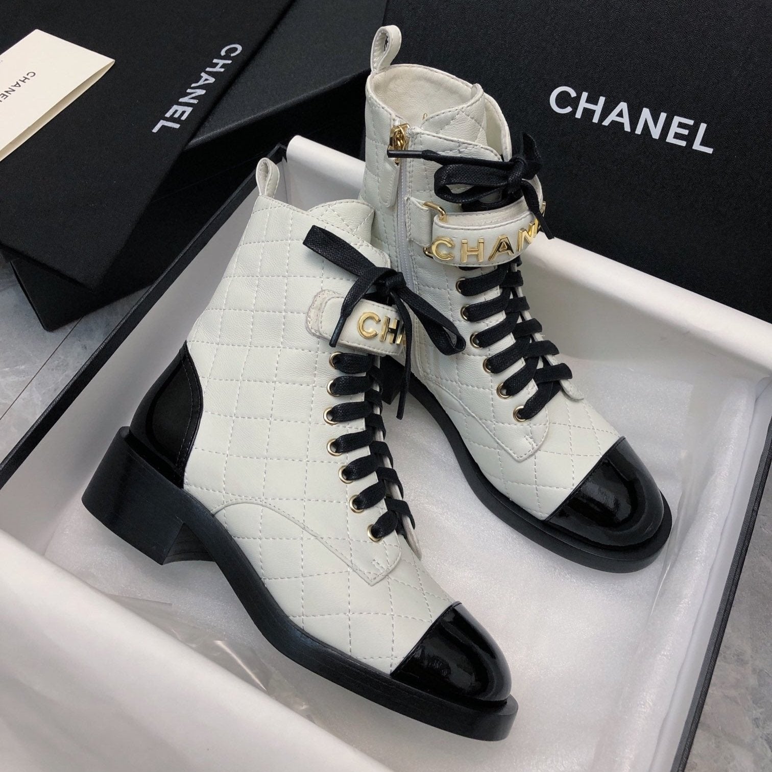 CC Combat Boots In White Mix Black Quilted Lambskin 944577
