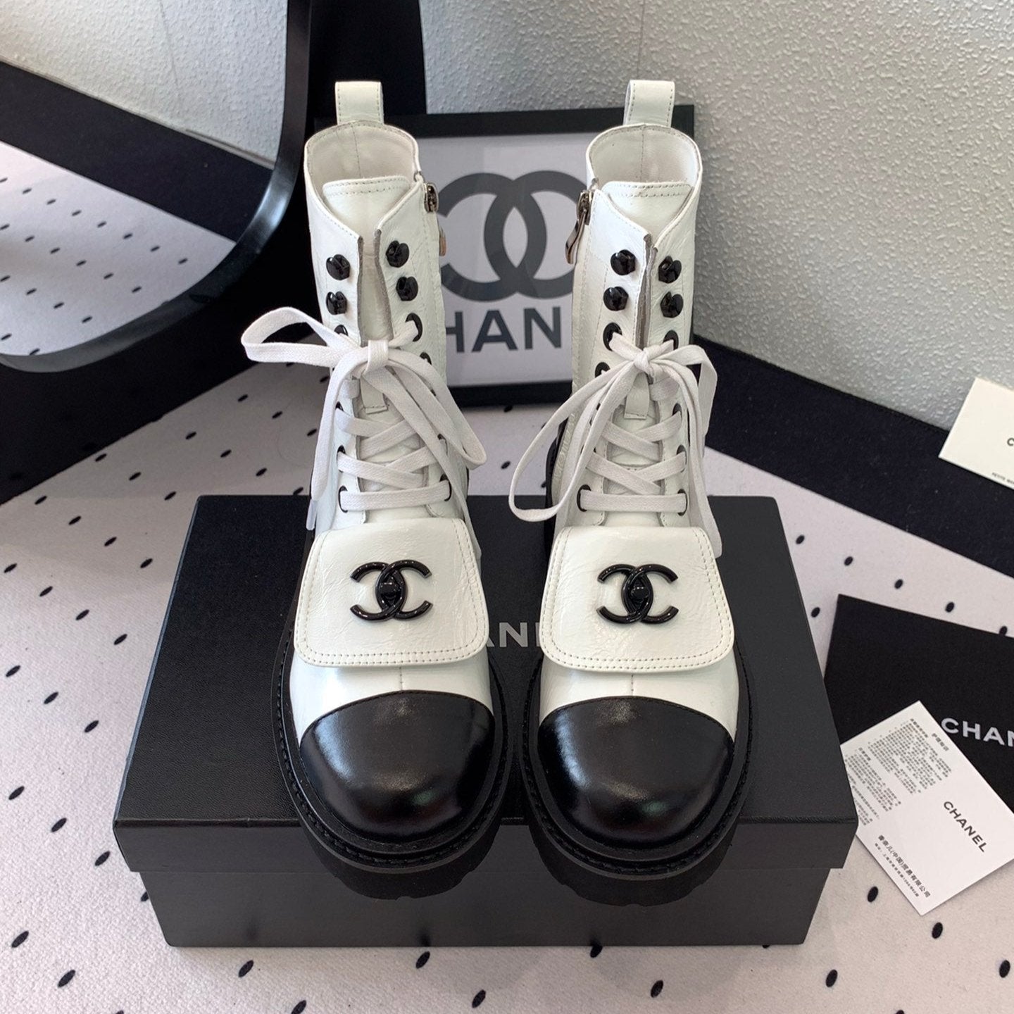 CC Combat Boots 50mm In Ivory White Mix Black Quilted Cowhide And Lambskin 944662