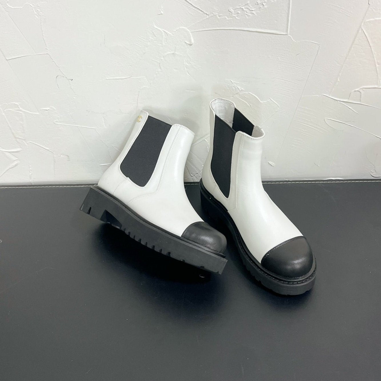 CC Short Boots In White Mix Black Logo Print Lambskin 938060