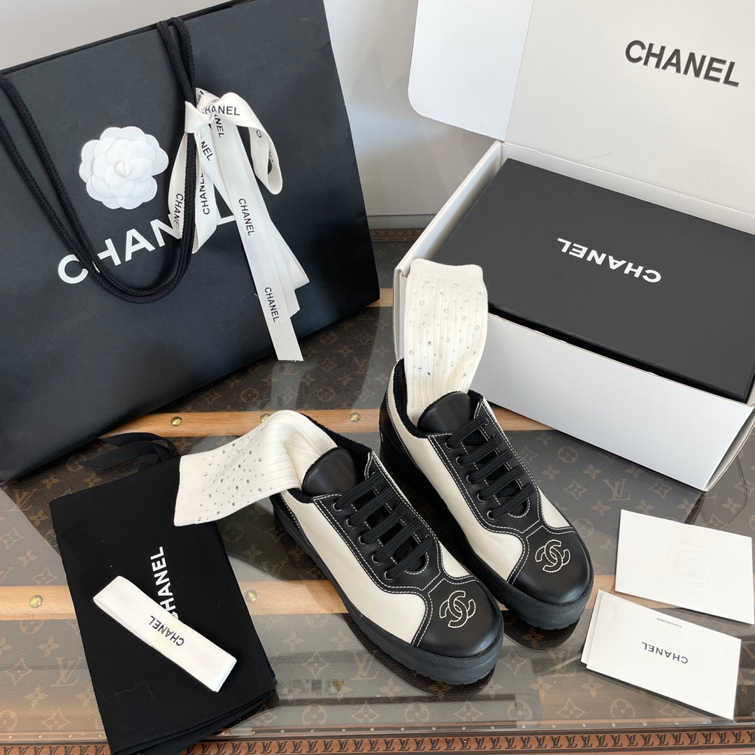 CC Shoe Oxford 50mm In White Black Calfskin And Lycra Fabric 944546