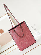 cc 24s31 shopping bag dark pink black sequins black hardware