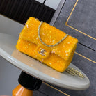 CC 25S Flap Bag 20cm Yellow Fringed Sequin Calfskin
