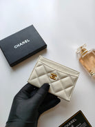 CC CARD HOLDER 11.2 WHITE CALFSKIN GOLD ICON