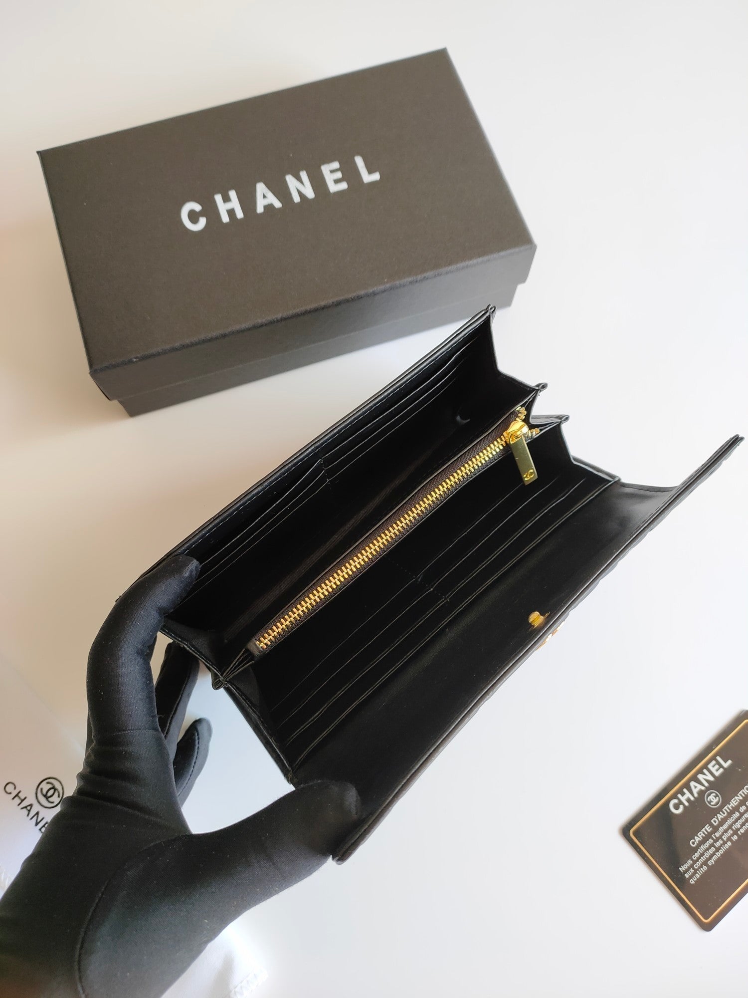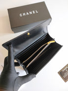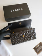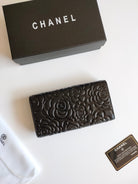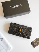 CC CLASSIC LONG PURSE CAVIAR 19 BLACK CALFSKIN EMBOSSED CAMELLIA