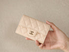 CC FLAP CARD HOLDER 11.3 BEIGE GRAINED CALFSKIN GOLD ICON