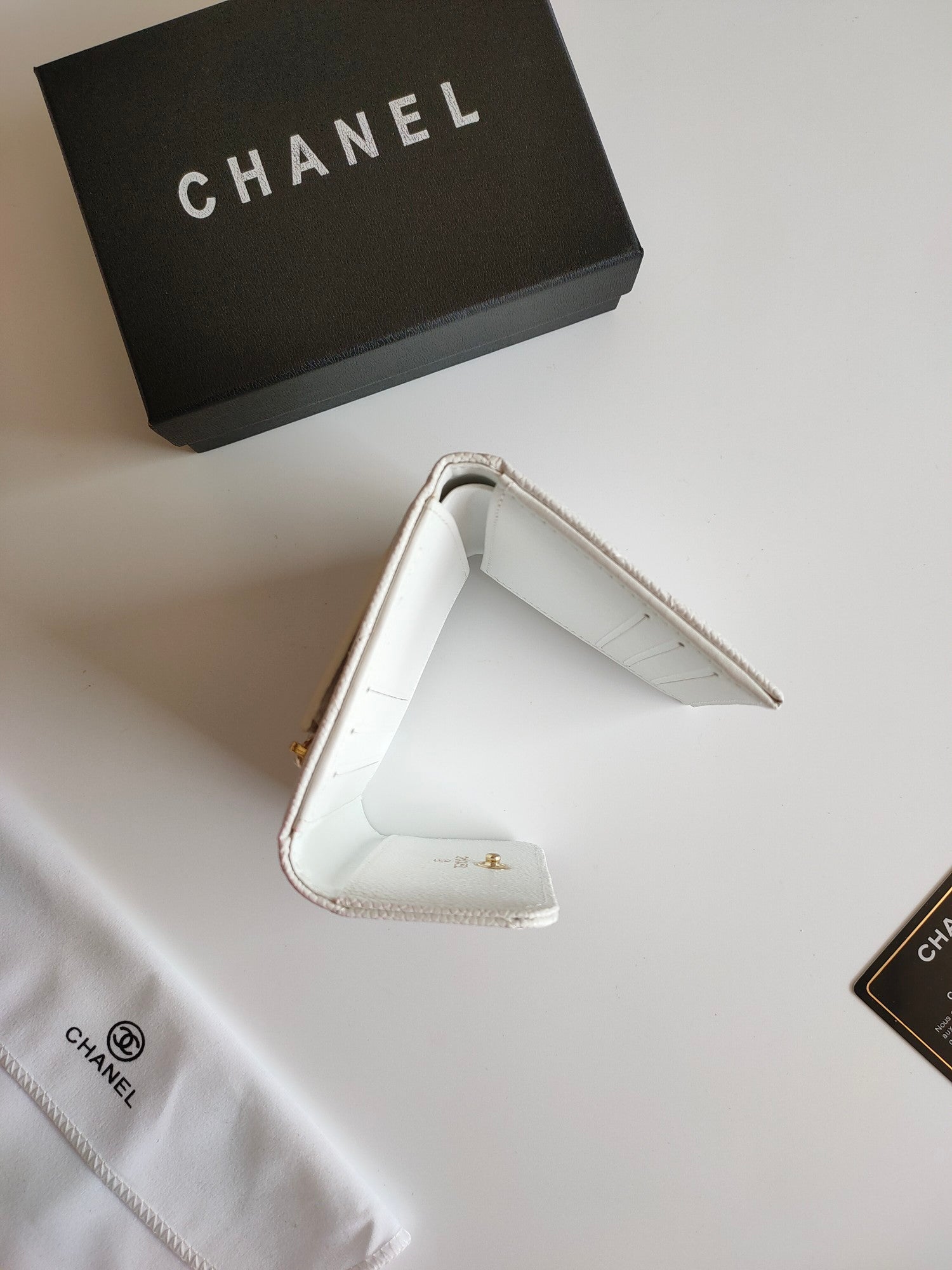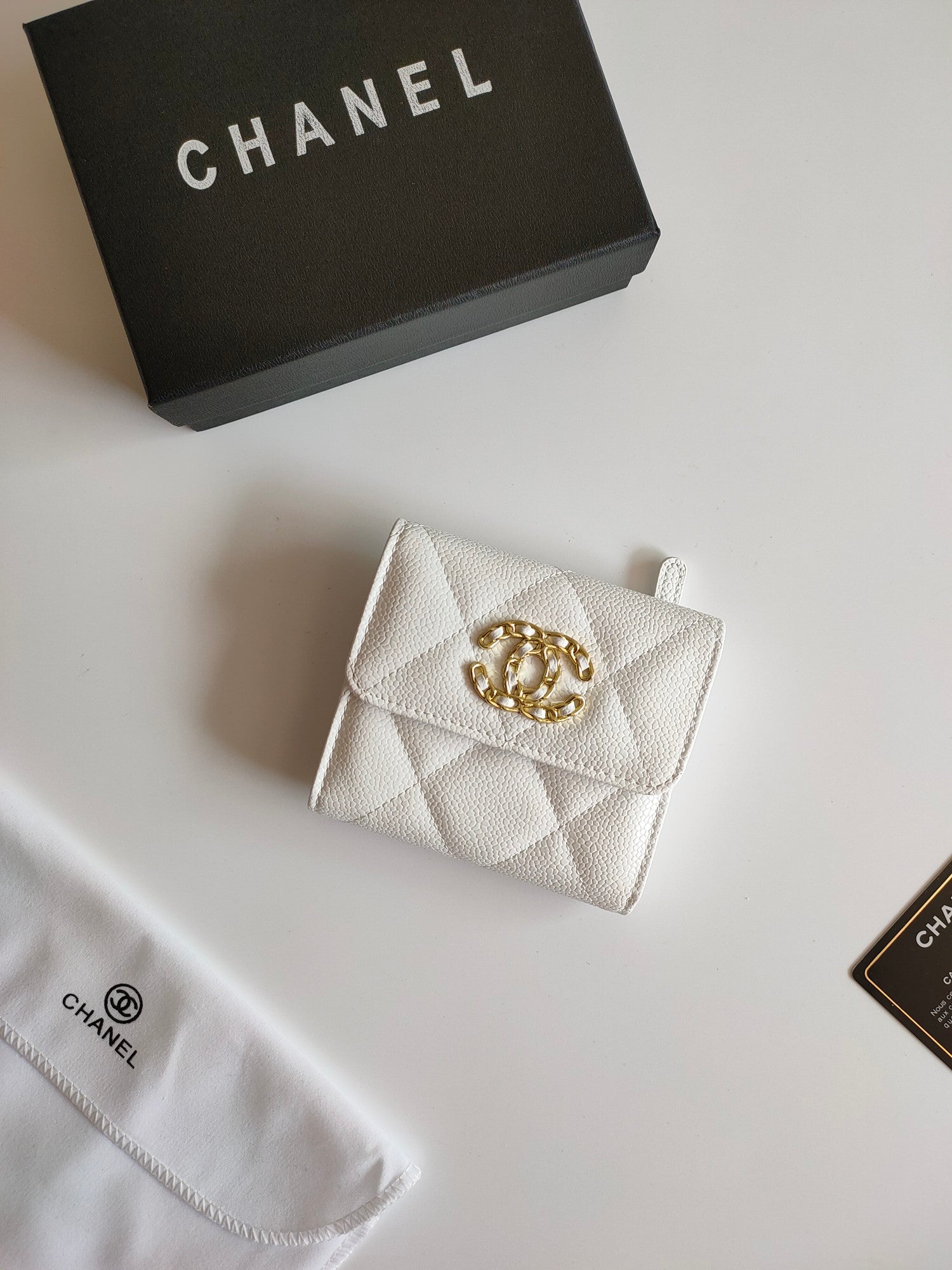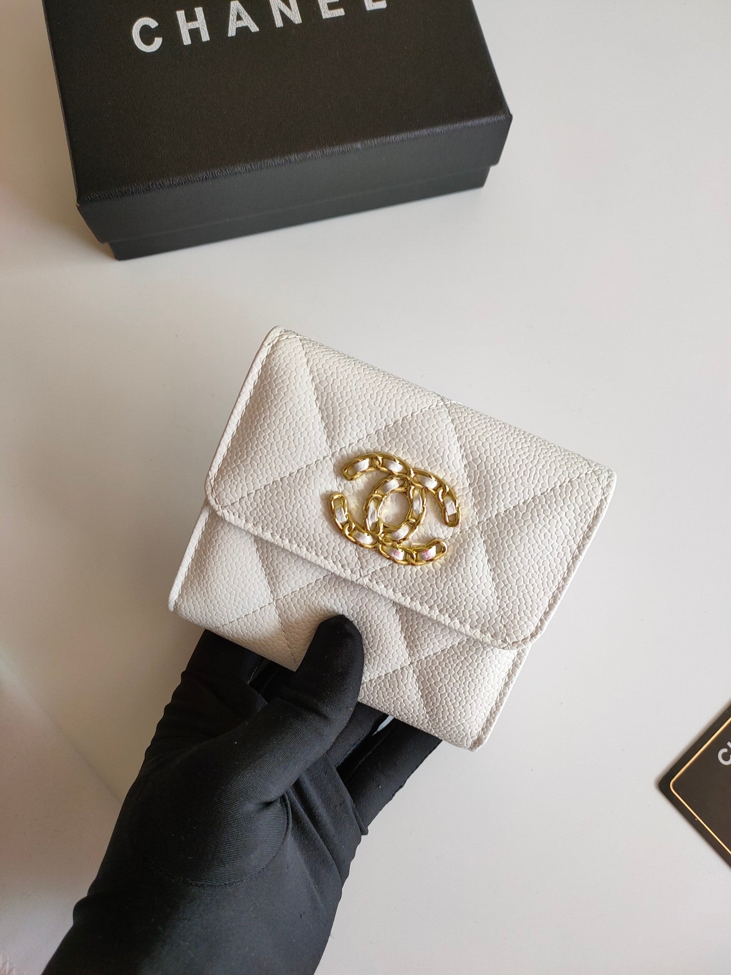 CC SQUARE PURSE 12 WHITE GRAINED CALFSKIN GOLD ICON