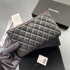 cc zipped wallet 20cm black quilted calfskin silver hardware