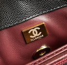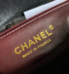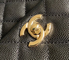 coco handle flap bag 23cm black quilted caviar with dark red top handle
