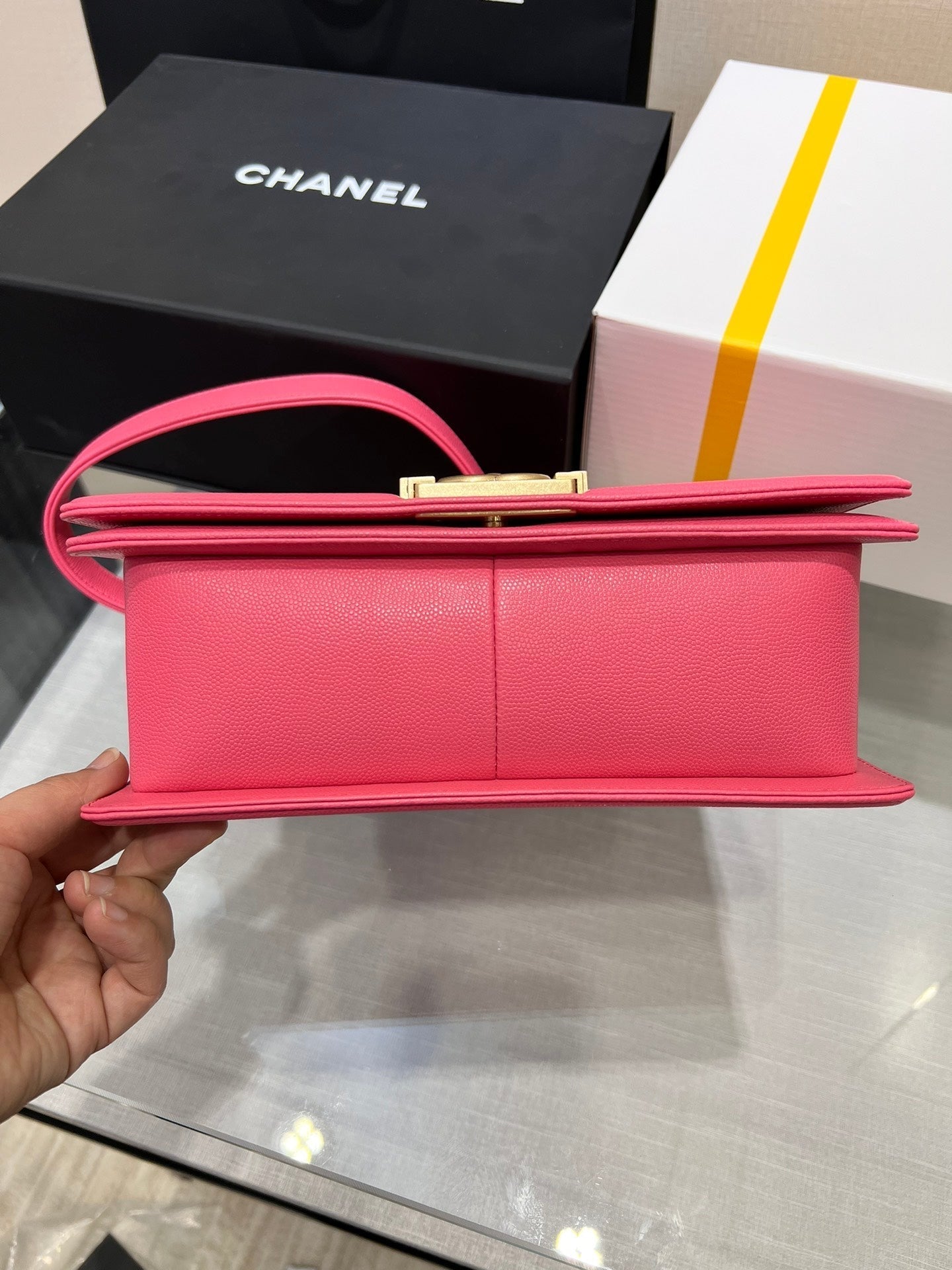 BOY BAG MEDIUM 25 LIGHT PINK CAVIAR GOLD HARDWARE