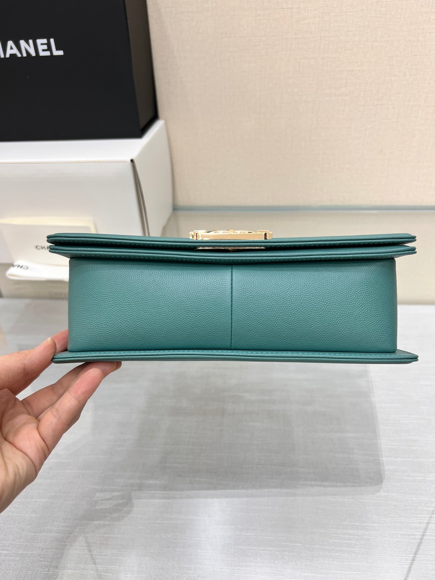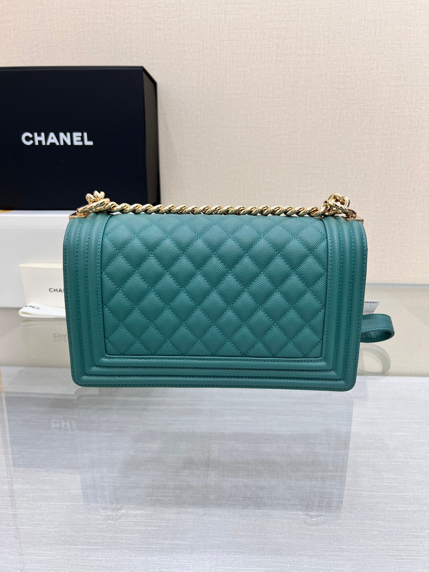 BOY BAG SMALL 20 EVER GREEN CAVIAR GOLD HARDWARE