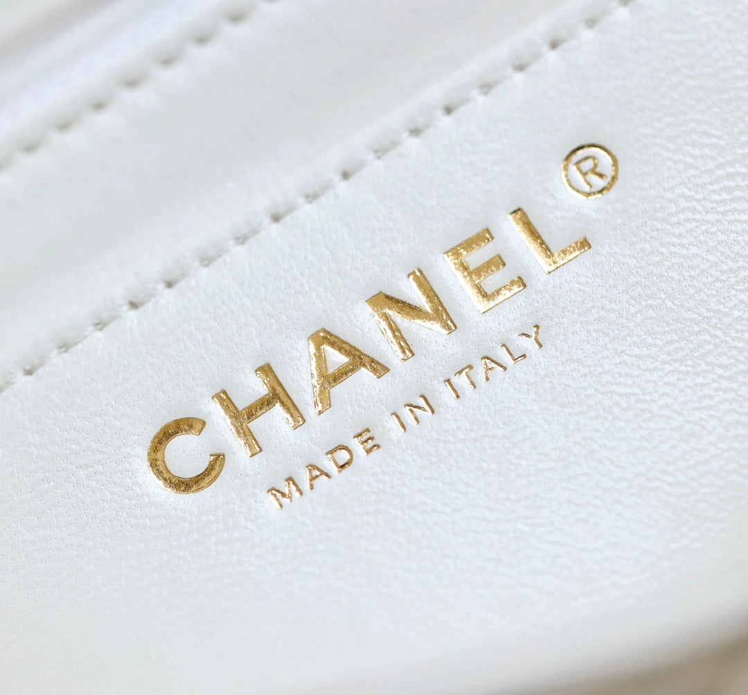 CC TRENDY 20CM WHITE LAMBSKIN GOLD HARDWARE