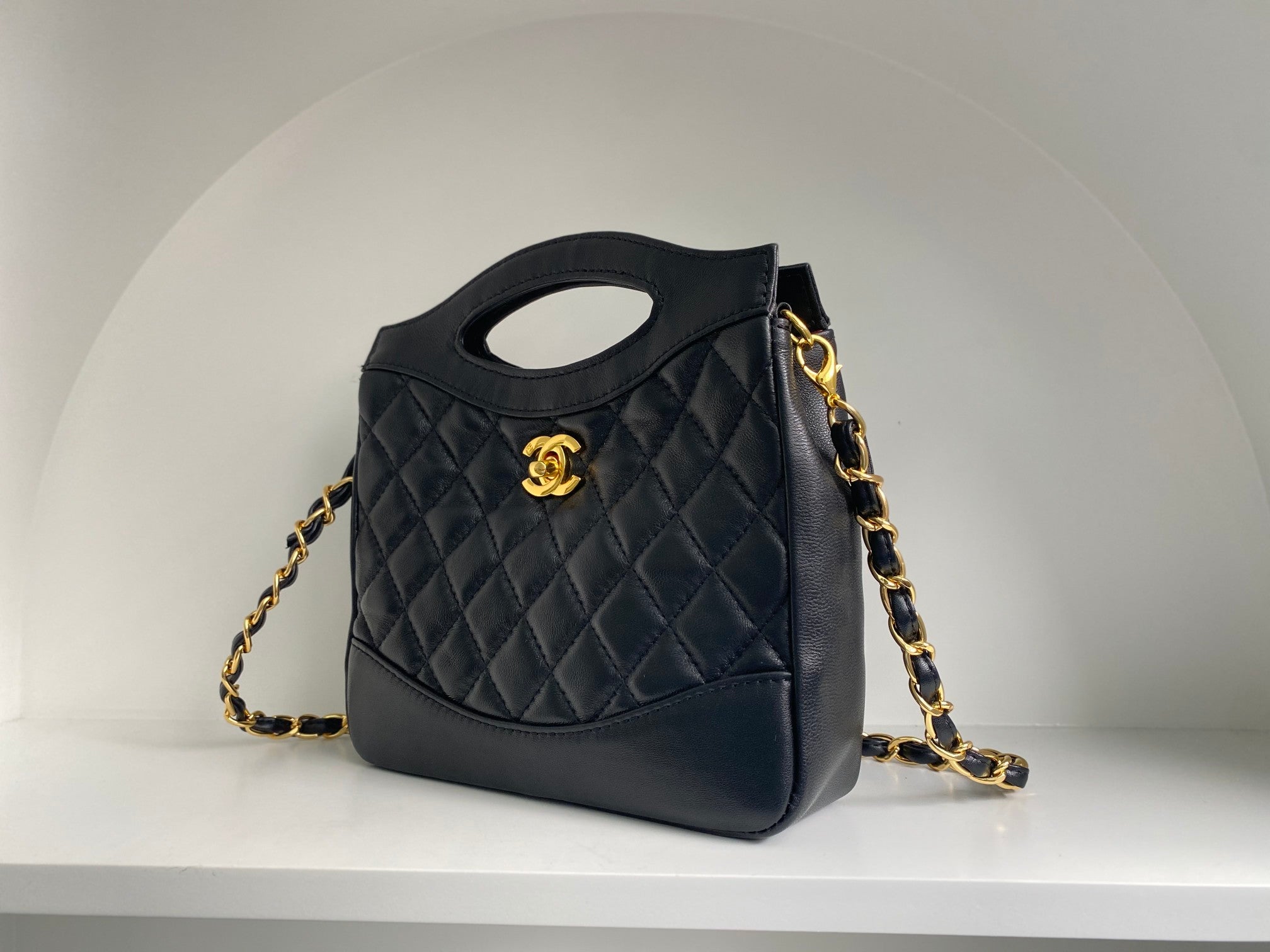 CC 19 TOTE 33CM BLACK LAMBSKIN GOLD HARDWARE