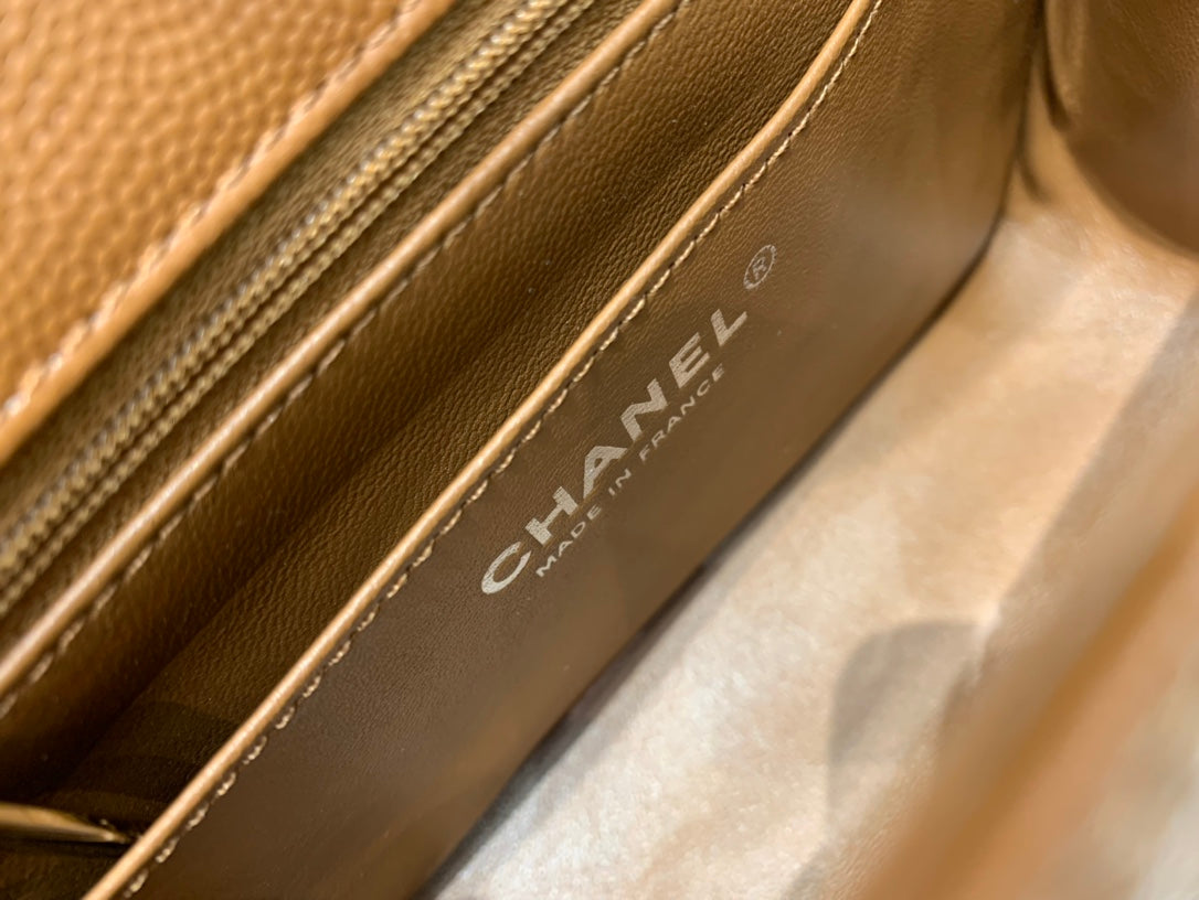 FLAP BAG 20CM CARAMEL LAMBSKIN GOLD HARDWARE