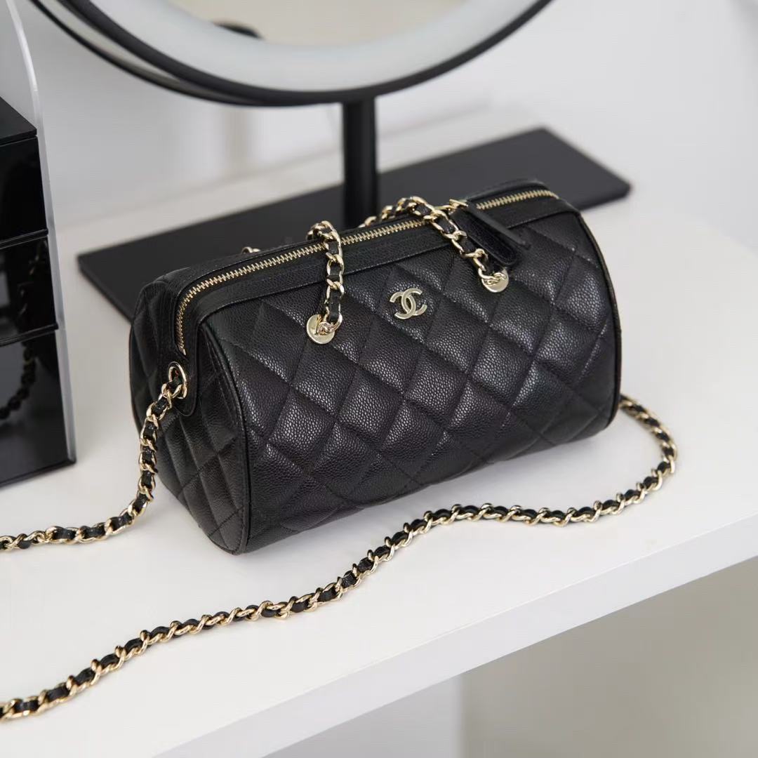 Chanel Black Caviar Bowling Bag Black calfskin