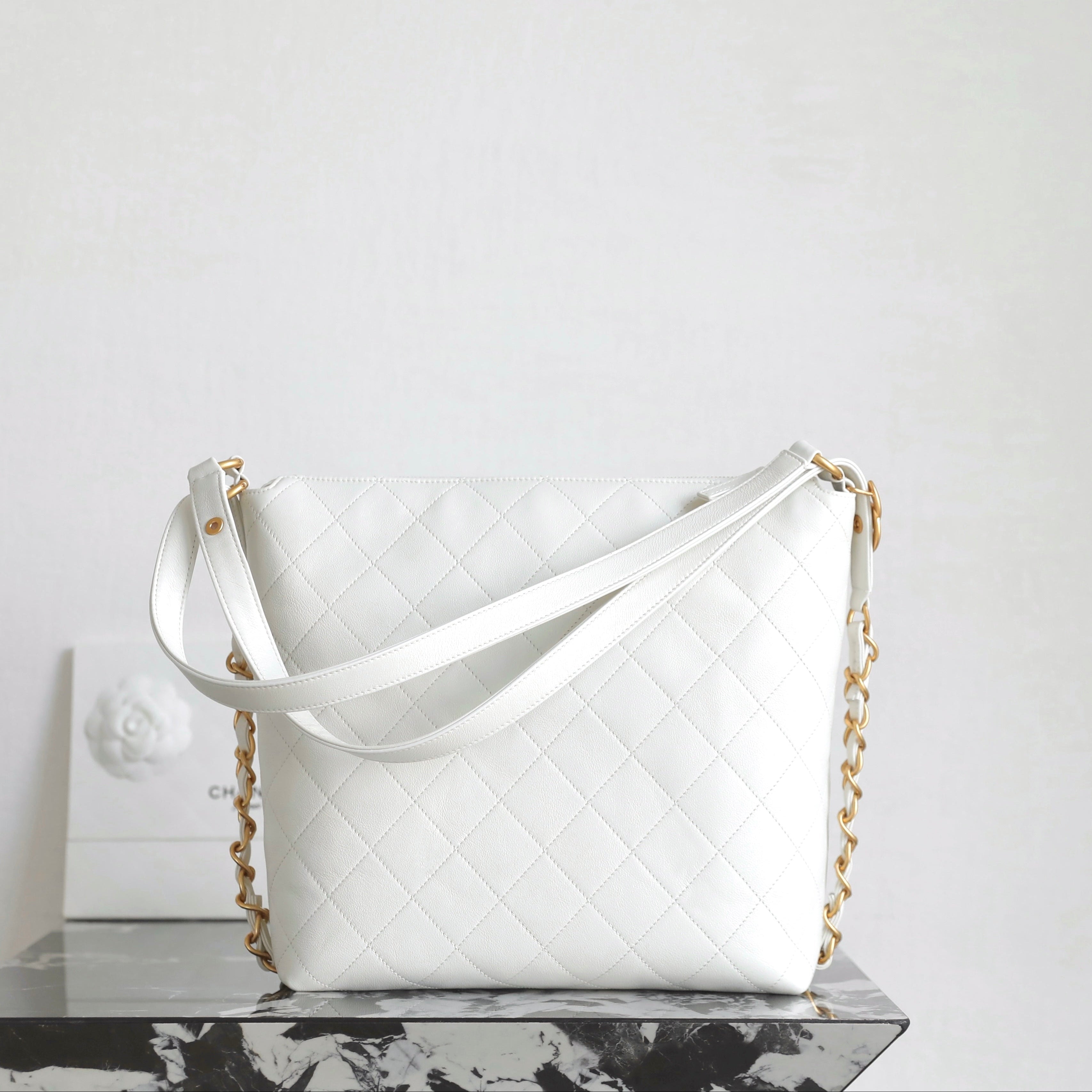Chanel 25 Hobo Bag 22cm White Calfskin 286182