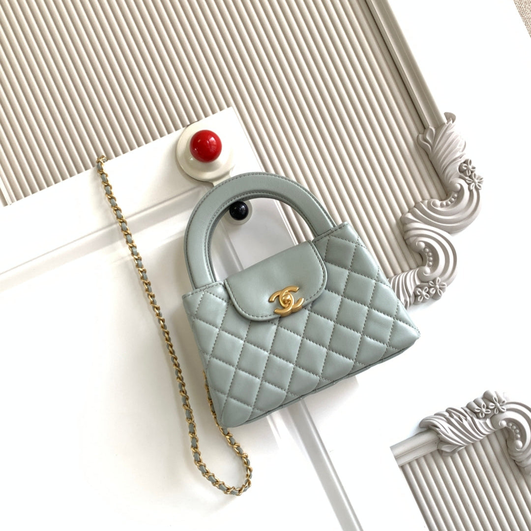 cc 24a nano 19cm kelly shopper bag pastel mint green lambskin