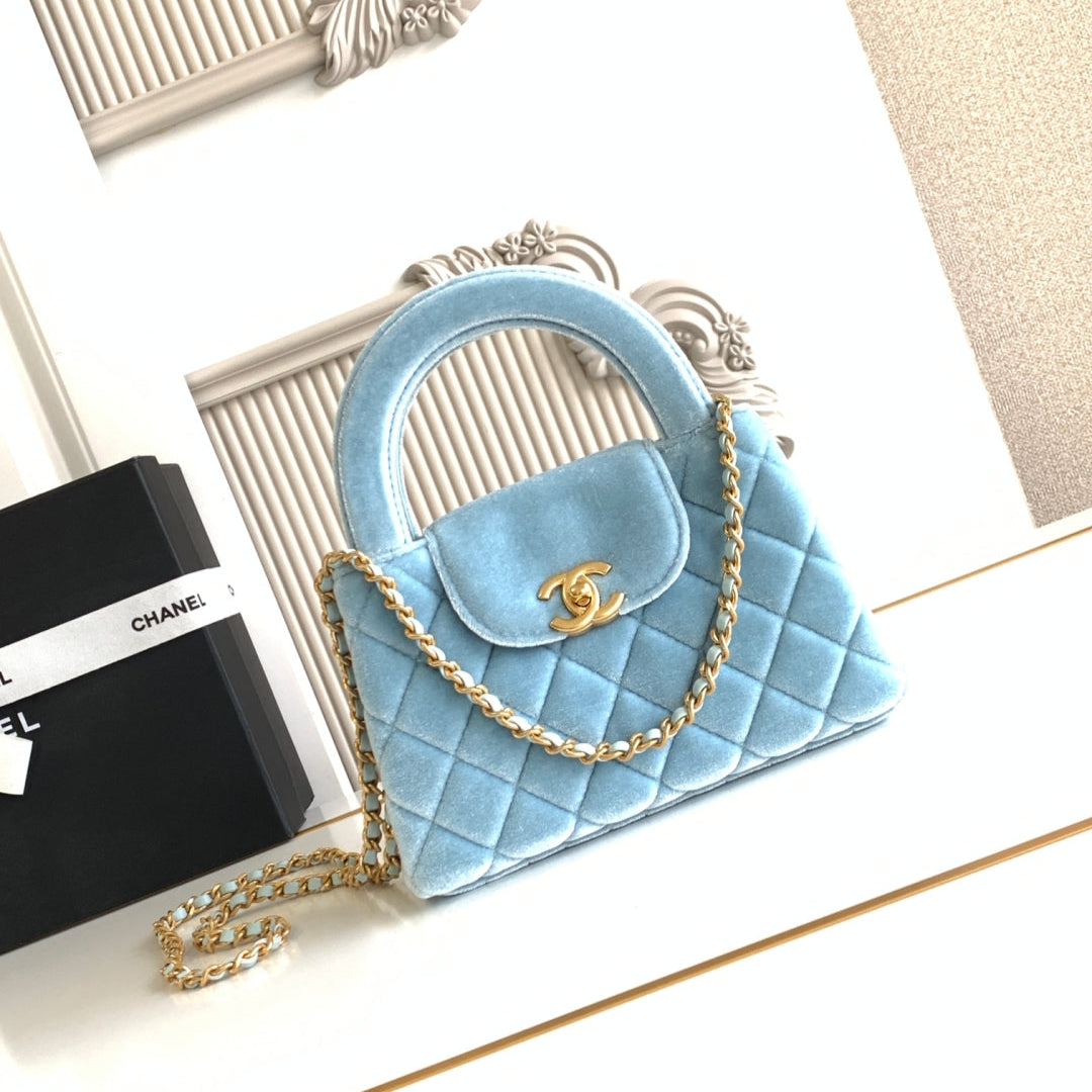 cc 24a nano 19cm kelly shopper bag light blue velvet