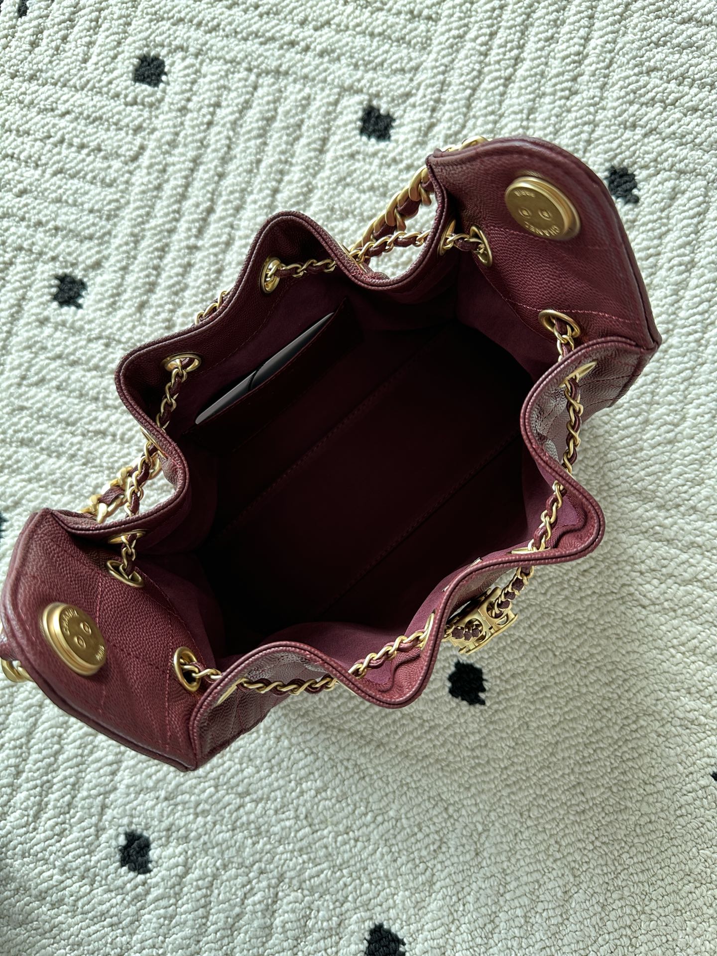 Chanel 25K Bowling Bag Burgundy Gold Sheepskin 294980