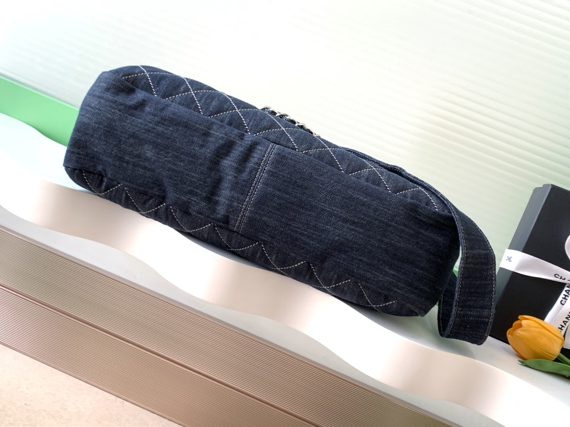 Chanel 25 Bag Navy Blue 40cm Denim Fabric 289495