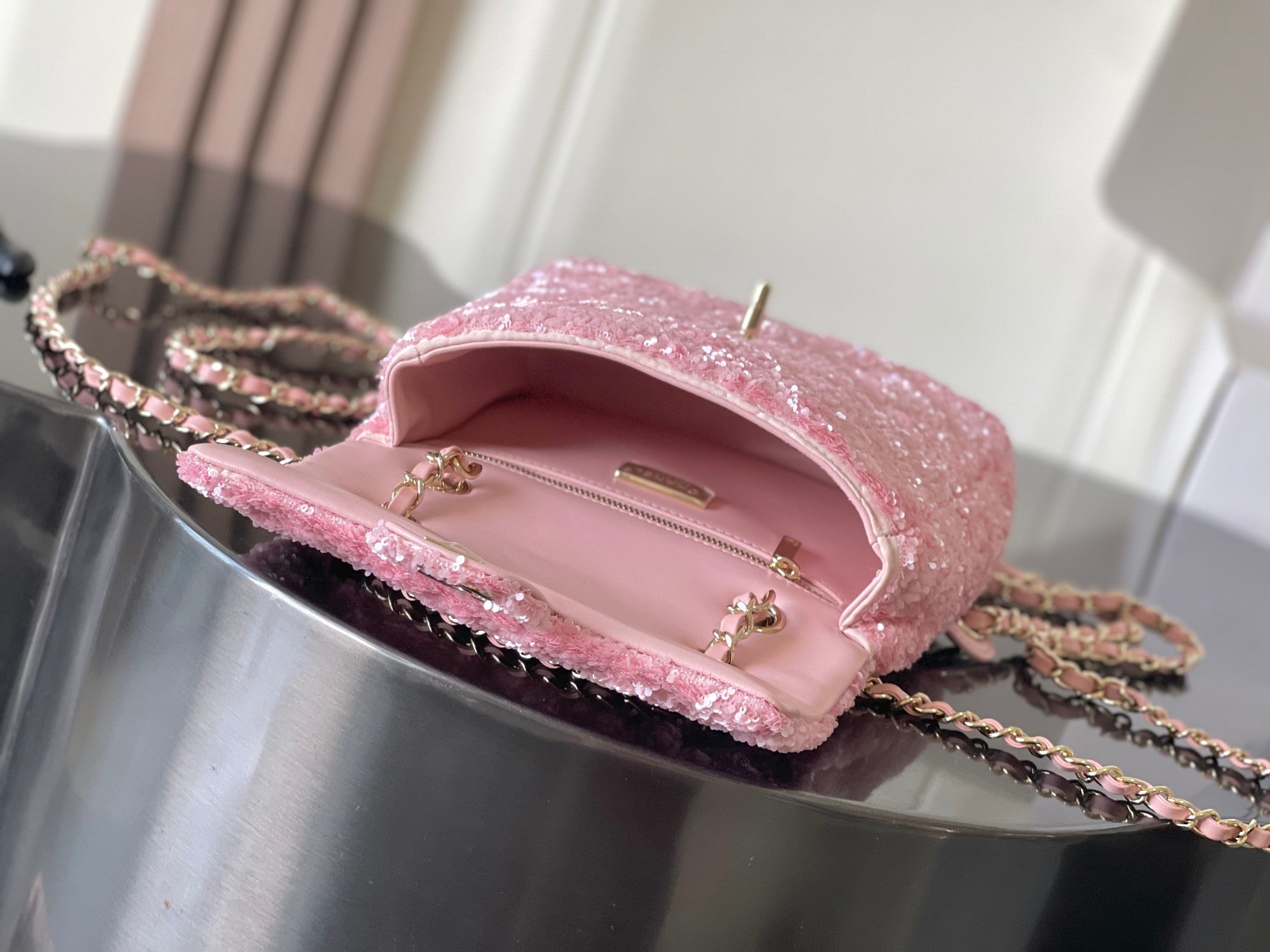 Chanel 25 Sequin Embroidered 21cm Bag Pink Leather Sequins 286171