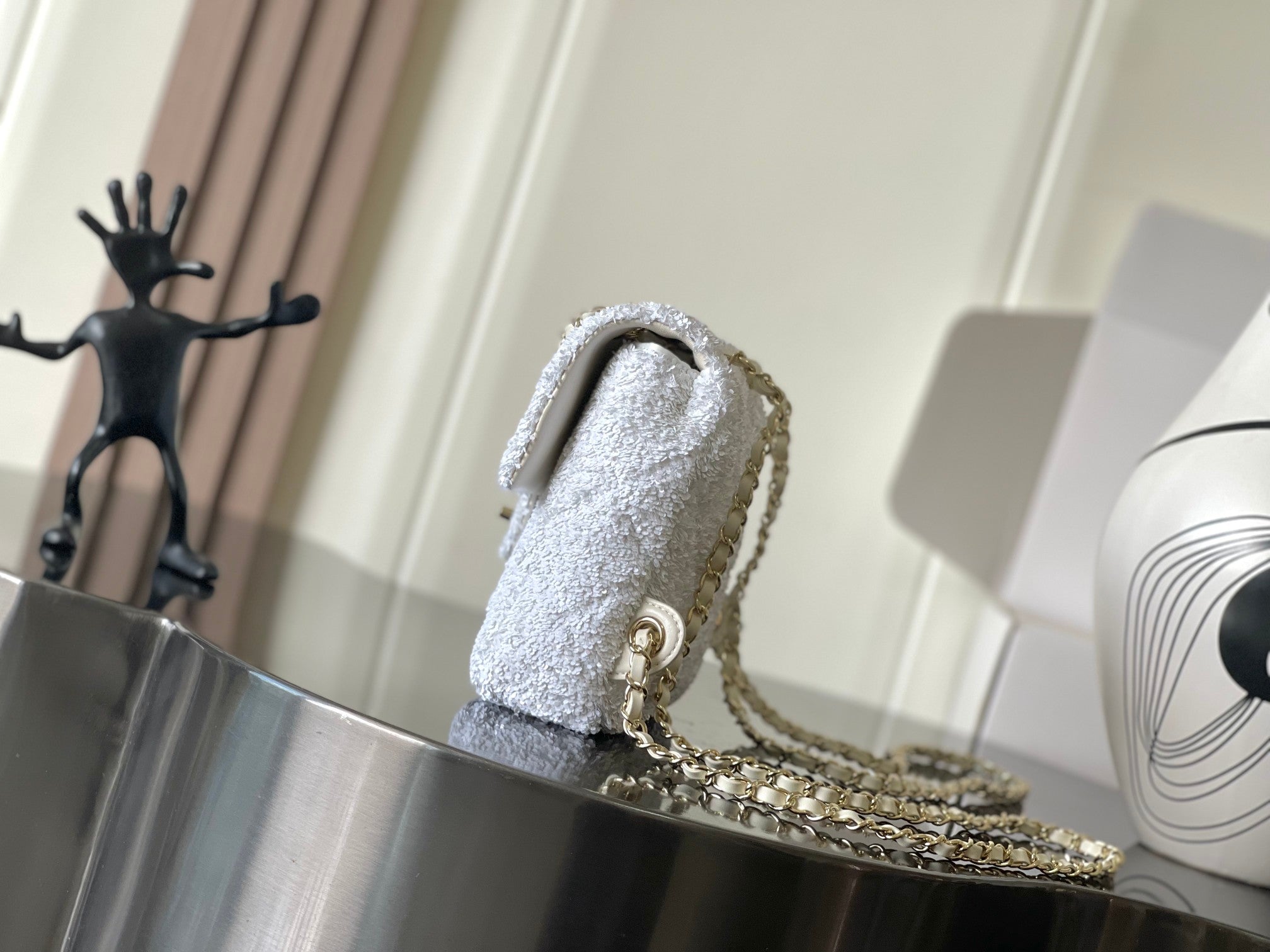 Chanel 25 Sequin Embroidered 21cm Bag White Leather Sequins 286172