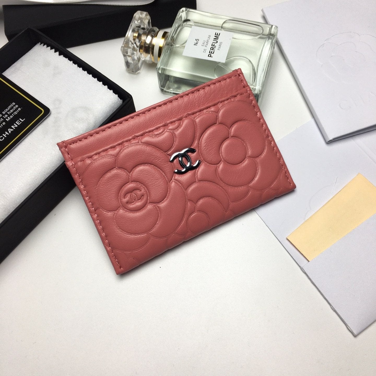 CC CARD HOLDER 11.2 CORAL CALFSKIN SILVER ICON
