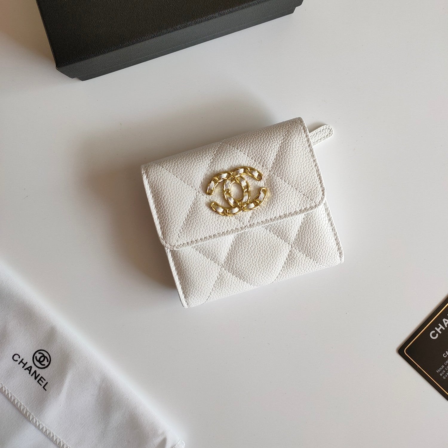 CC TRIFOLD PURSE 12 WHITE GRAINED CALFSKIN GOLD ICON