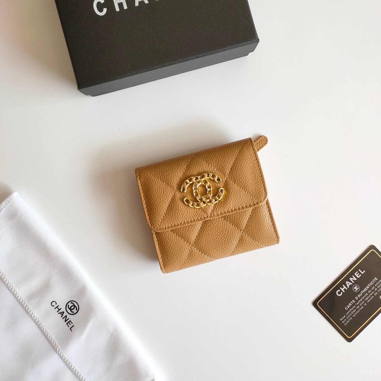 CC TRIFOLD PURSE 12 AMBER GRAINED CALFSKIN GOLD ICON