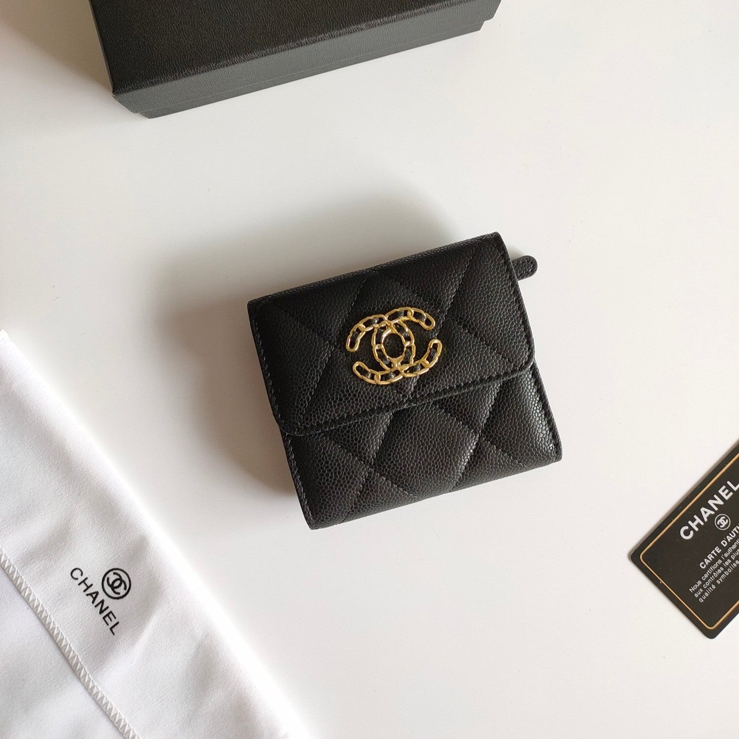 CC TRIFOLD PURSE 12 BLACK GRAINED CALFSKIN GOLD ICON