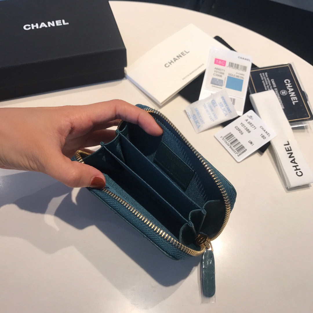 CC ZIPPED COIN BASIC PURSE 11 OCEAN CALFSKIN GOLD ICON