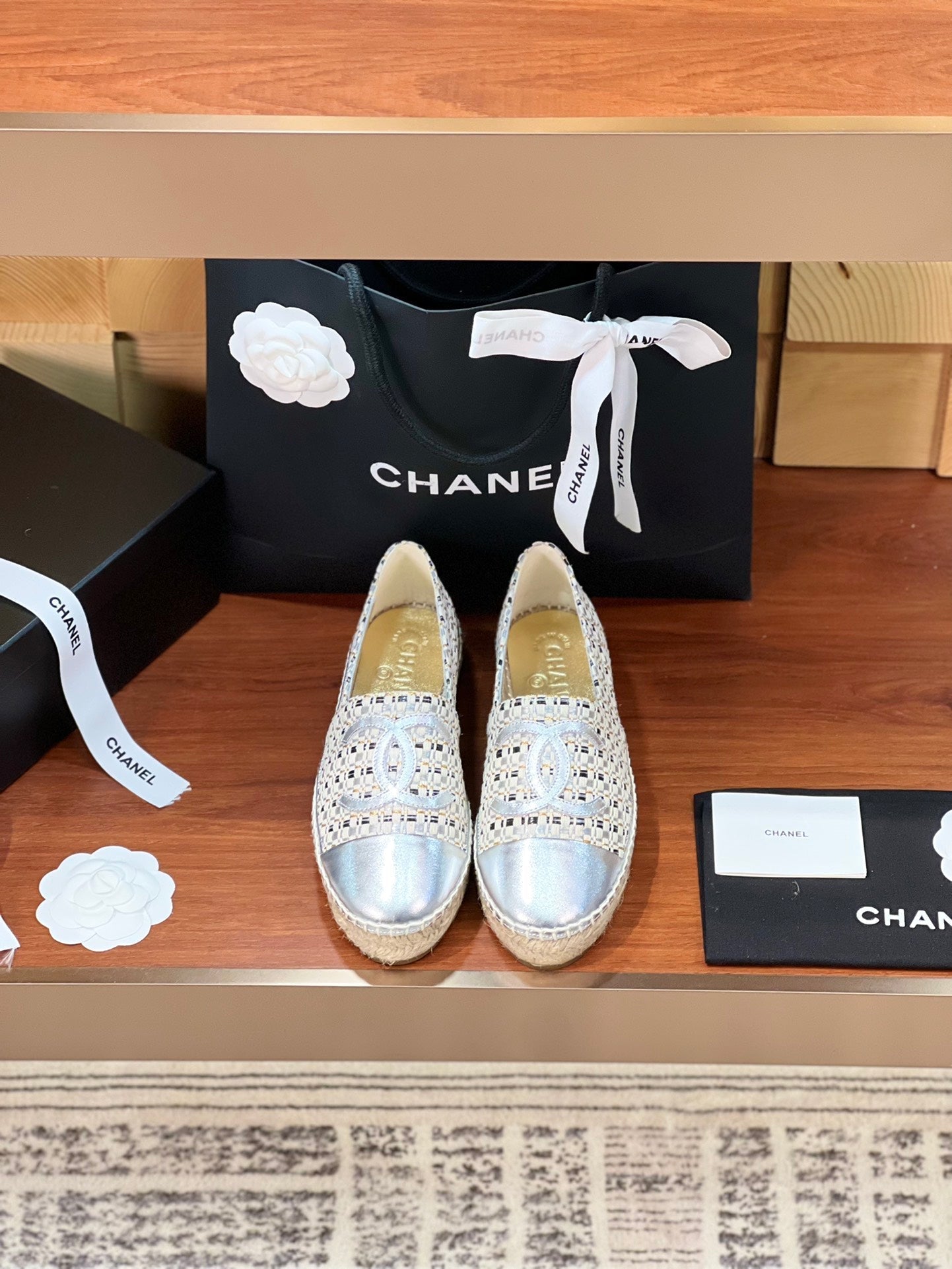 cc espadrilles beige black calfskin