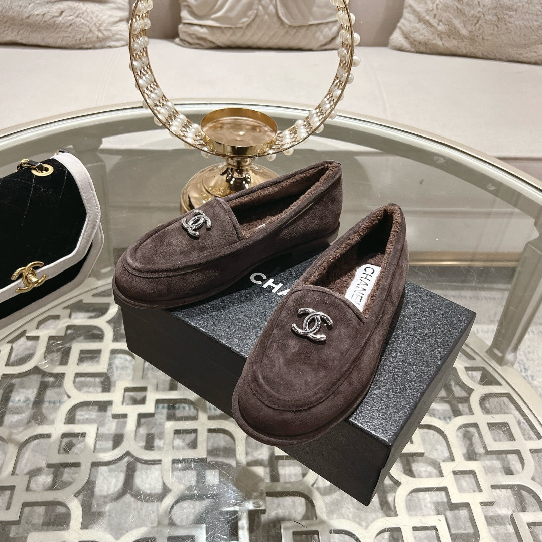 CC LOAFERS IN BLACK FLEECE WITH WHITE LOGO