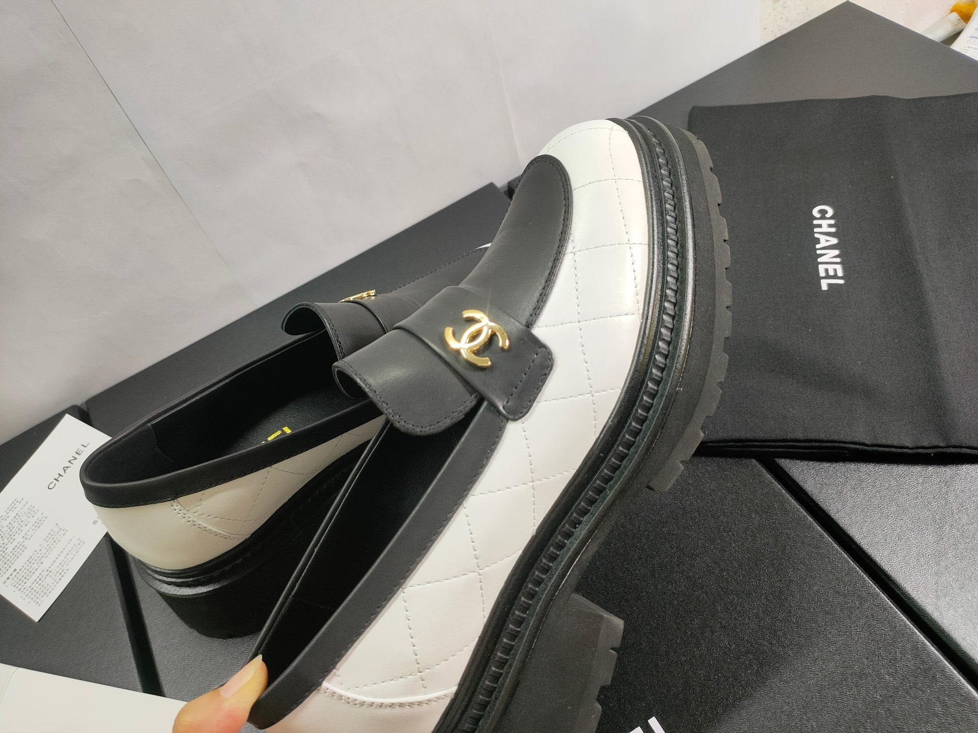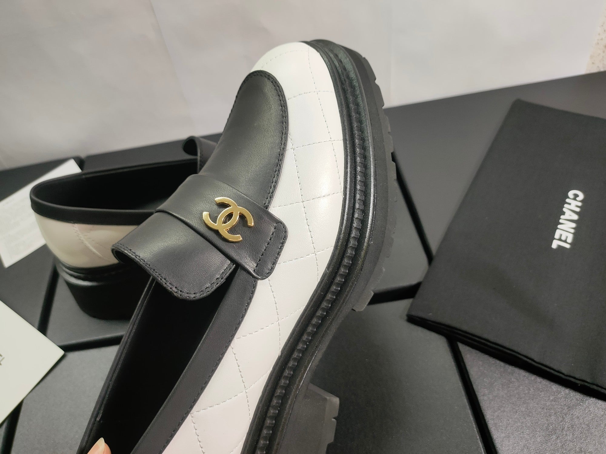 CC Moccasins 45mm White Mix Black Lambskin