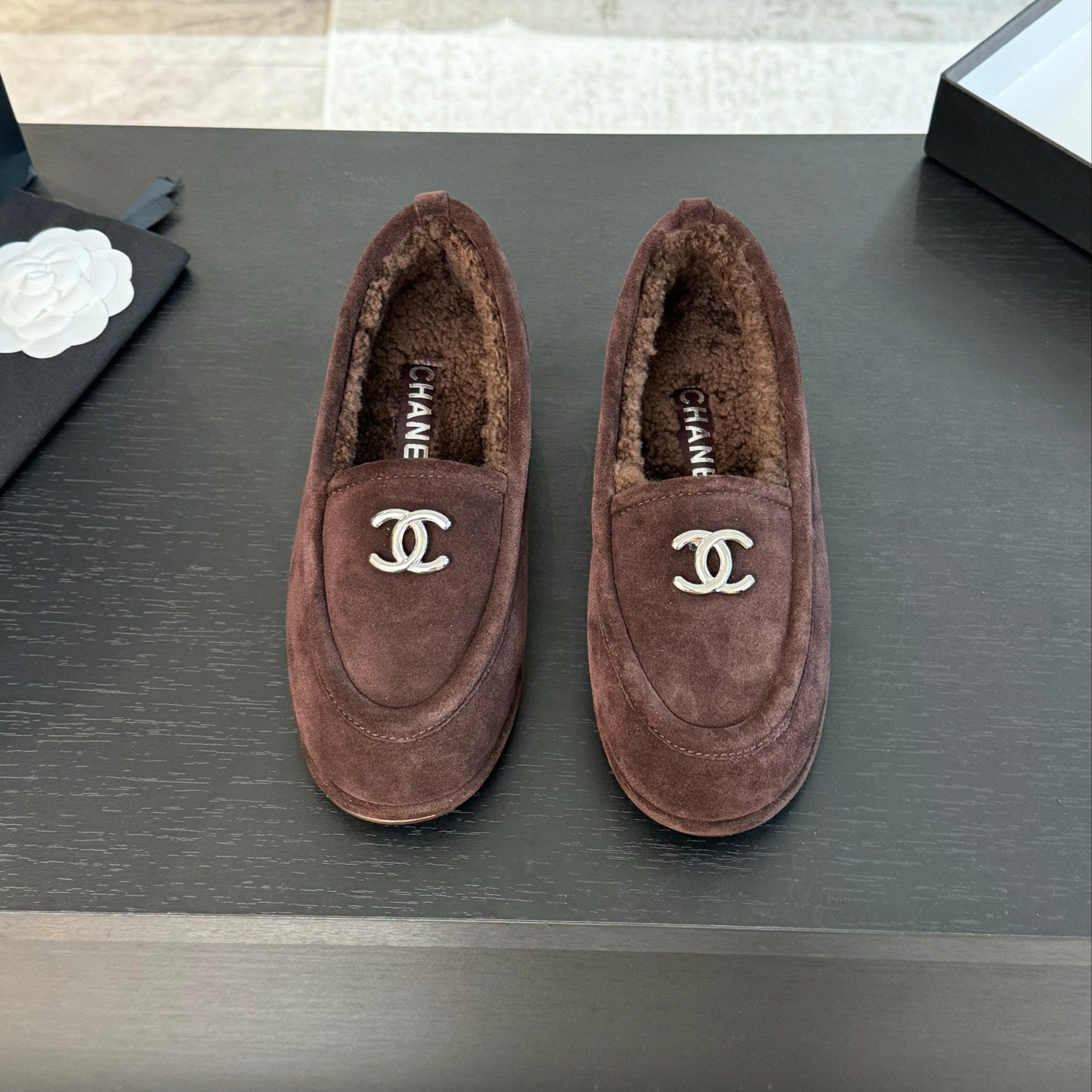 CC Moccasins Earth Brown Suede And Wool