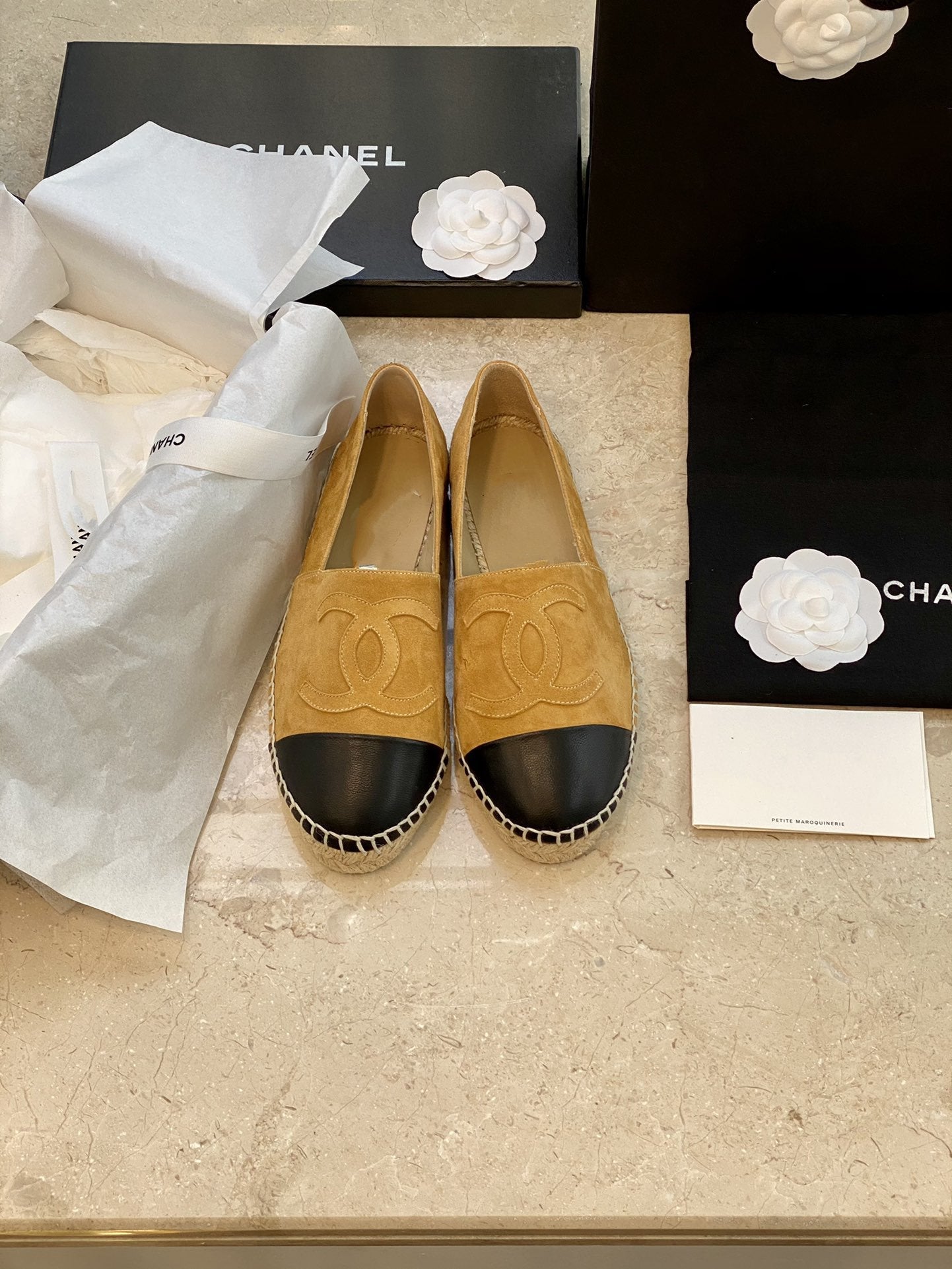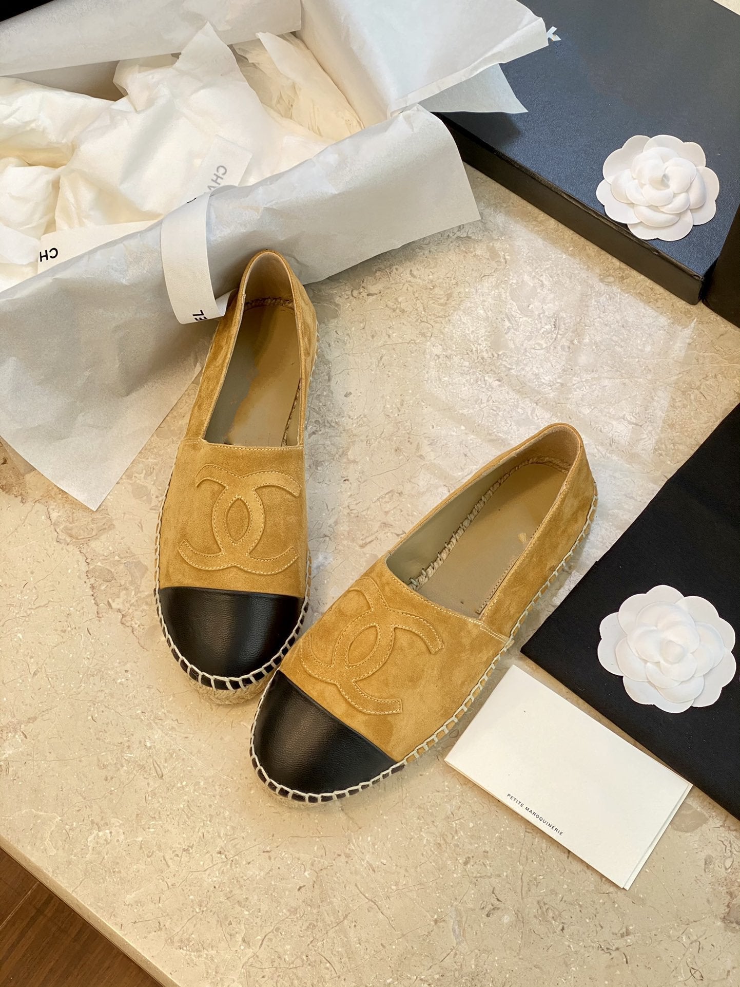 espadrilles dark beige suede black lambskin