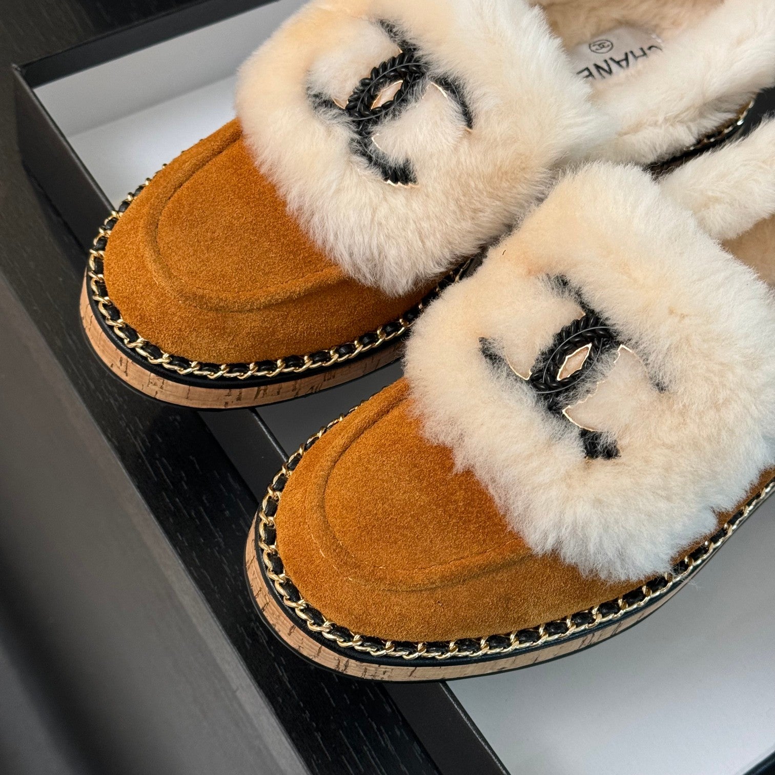 CC LOAFERS IN CINNAMON BROWN FLEECE WITH WHITE LOGO