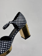 BLOCK HEEL SANDALS BLACK POLKA DOT SHEEPSKIN