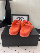 CC DAD SANDAL MULE IN RED ORANGE LAMB FUR