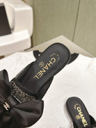 CC JEWELED MULE WITH SILK BOW AND BLACK LAMBSKIN