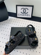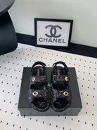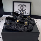 dad sandal black white tweed