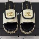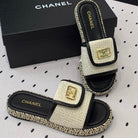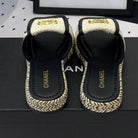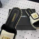 mule sandal cream tweed black calfskin