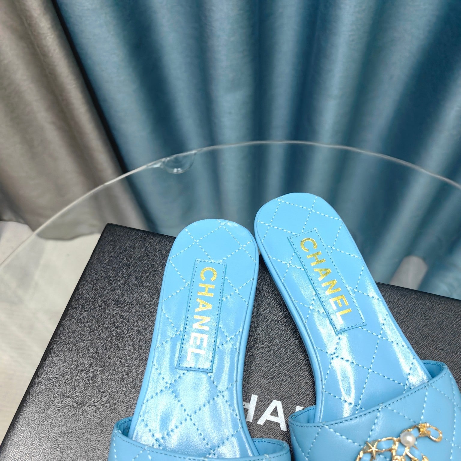 Double C Classic One-Strap Sandals White Sky Blue Lambskin