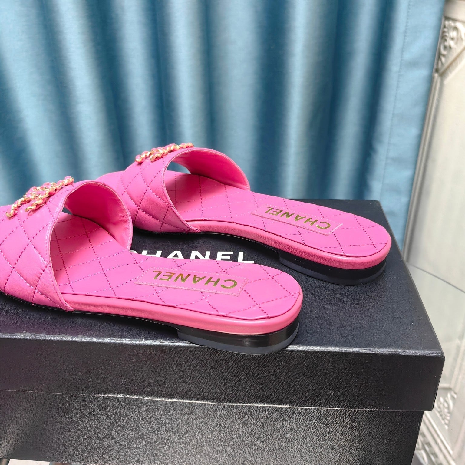 Double C Classic One-Strap Sandals White Pink Lambskin