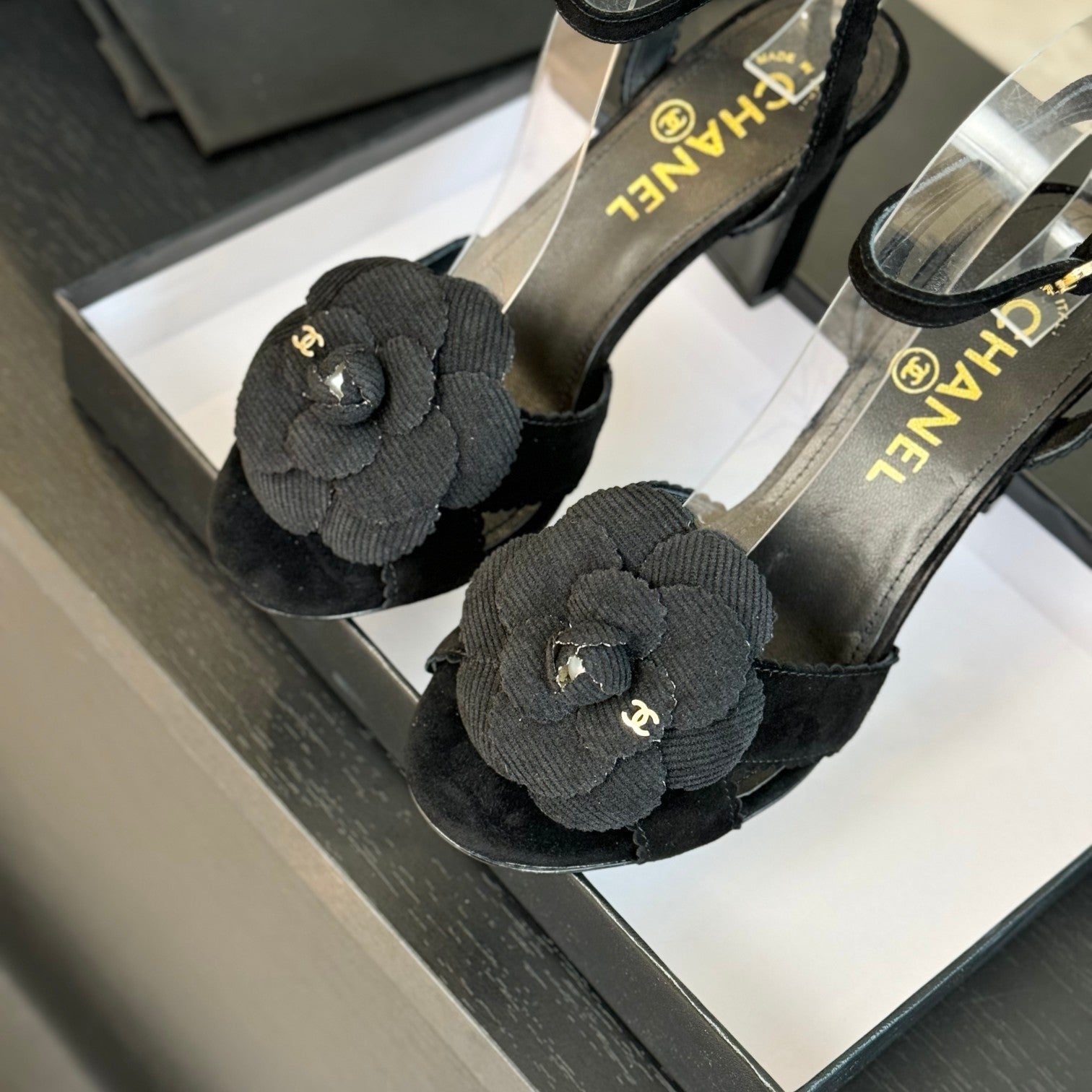 CC CAMELLIA SANDAL IN BLACK SUEDE AND CALFSKIN WITH FLOWER