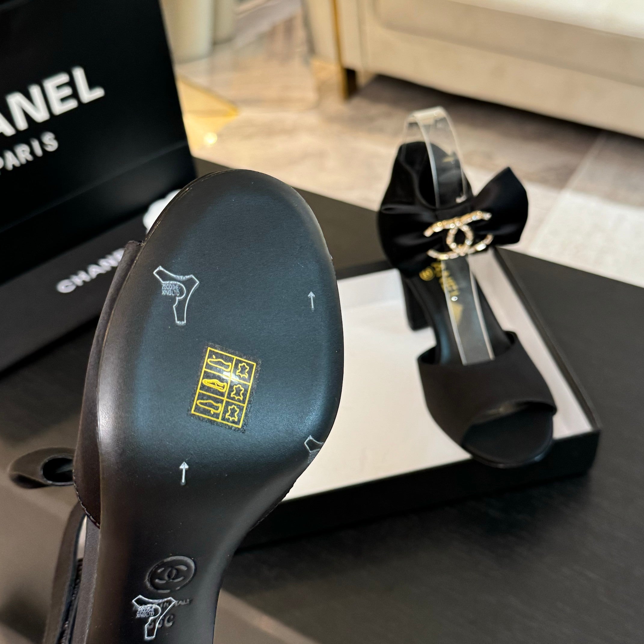 CC Mule 60mm In Black Wool Tweed And Lambskin Gold Hardware